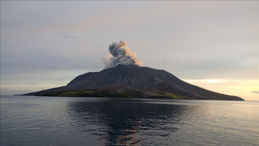 A volcano in Indonesia’s Ruang Island again erupted early Tuesday, but no tsunami warning has so far been issued, local media reported.