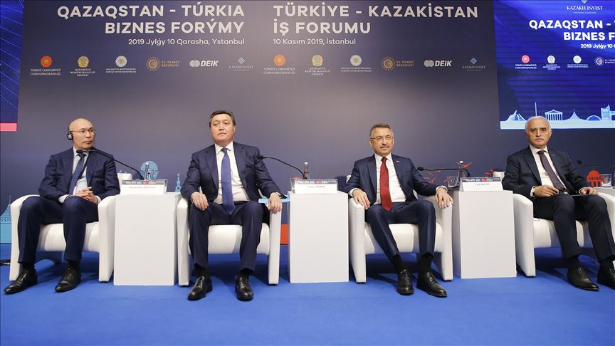 The one-day business forum, organized by Turkey’s Foreign Economic Relations Board (DEIK) and Kazakh Invest, is being attended by Turkish Vice President Fuat Oktay, Kazakh Prime Minister Askar Mamin, business delegates and representatives from both sides.