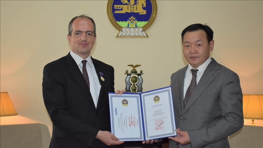 The award was presented to Emrah Ustaomer, TIKA’s program coordinator in the capital Ulaanbaatar by State Secretary of Mongolian Foreign Ministry Ankhbayar Nyamdorj on behalf of Mongolian President Khaltmaagiin Battulga, a TIKA statement said.