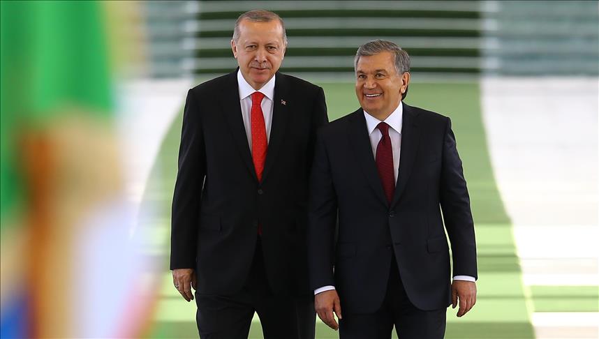 President Recep Tayyip Erdogan was welcomed in capital Tashkent on Monday by his Uzbek counterpart Shavkat Mirziyoyev.