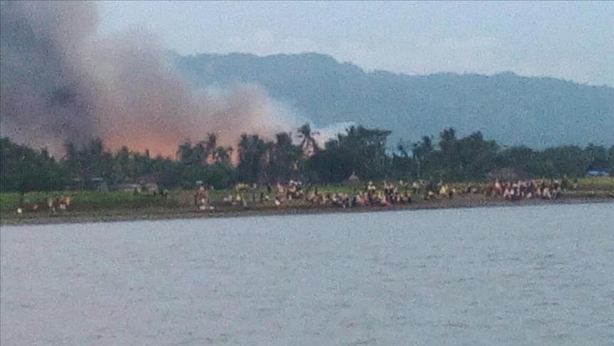 In footage obtained by Anadolu Agency, Rohingya civilians can be seen fleeing across a wide river, carrying whatever possessions they could salvage on their backs.