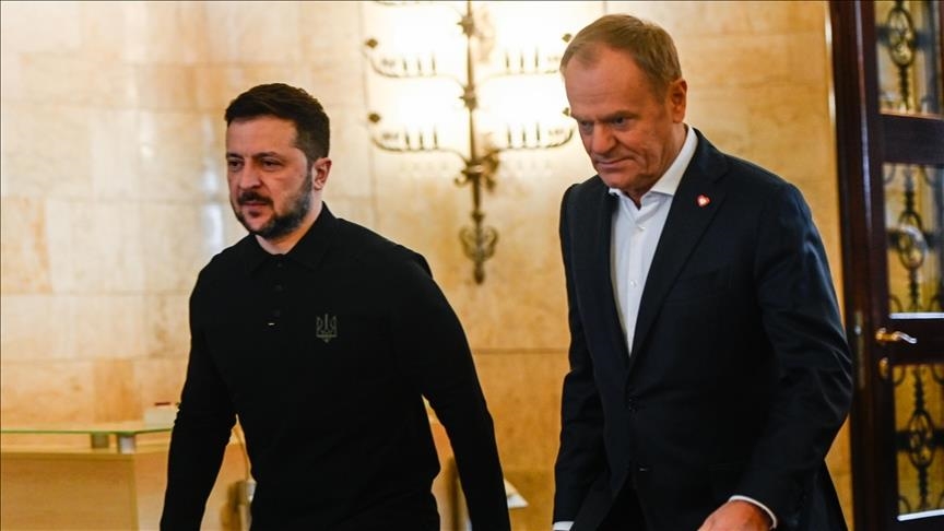 Ukrainian President Volodymyr Zelenskyy said Wednesday that he held talks with Polish Prime Minister Donald Tusk after Russian drones targeting Ukraine crossed into Polish airspace, marking “a completely different level of escalation.”
