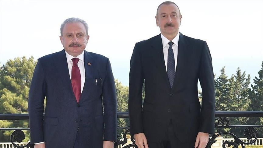 Azerbaijani President Ilham Aliyev on Monday received a delegation led by Turkish Parliament Speaker Mustafa Sentop in the capital Baku.