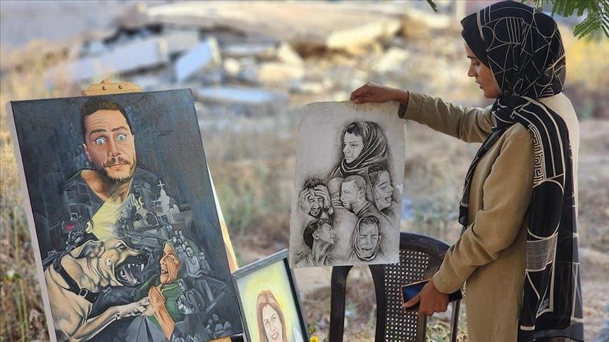“The combination of artistic drawings and food aid cartons represents a kind of artistic philosophy, especially since we only see these food parcels during the war. And the paintings --they relate to scenes of daily suffering in war,” he told Anadolu.