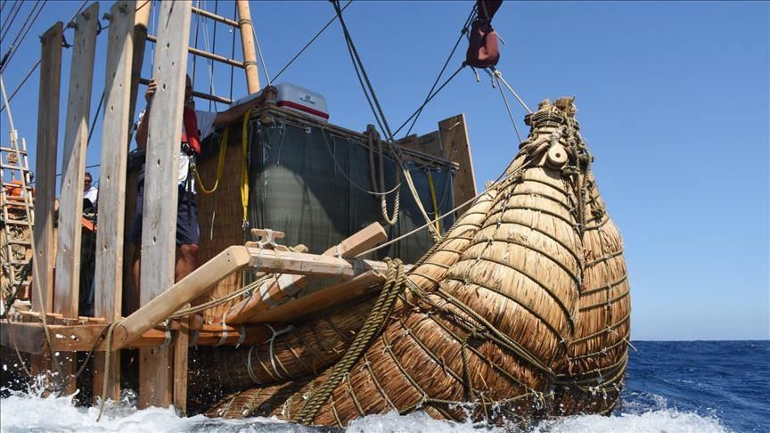 The 14-meter-long ship was built in Varna, Bulgaria with reeds brought from Bolivia.