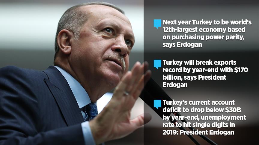 Turkey will be the 12th-largest economy based on purchasing power parity (PPP) next year, President Recep Tayyip Erdogan said on Tuesday.