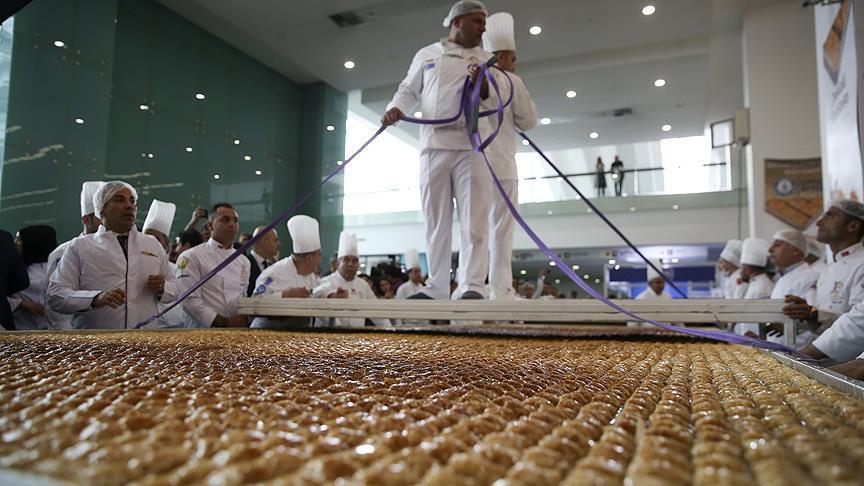 Turkish chefs broke new Guinness record by making "The Biggest Baklawa of the World", a traditional Turkish pastry dessert, during Gastronomy summit in the capital Ankara.