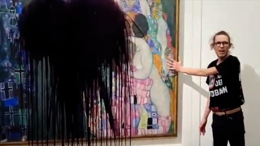 A video posted online showed two activists from Letzte Generation, a Germany-based environmentalist group, throwing oil at the oil on canvas painting Death and Life by Austrian painter Klimt from the early 20th century.