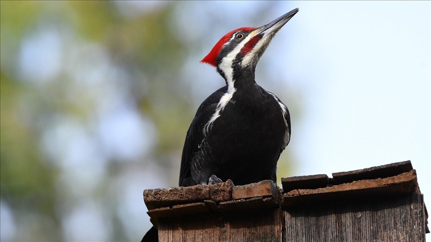 A majestic black-and-white striped woodpecker with a long beak and a high plume of red feathers on its head has been declared extinct in the US, the government said Wednesday.