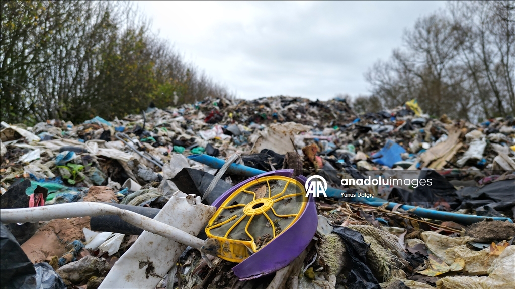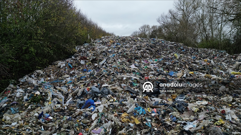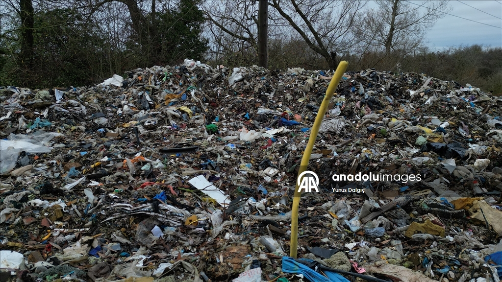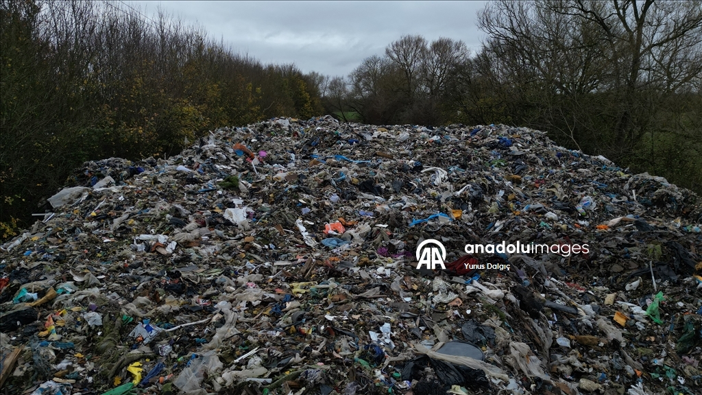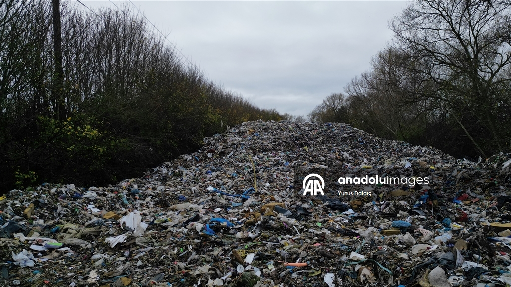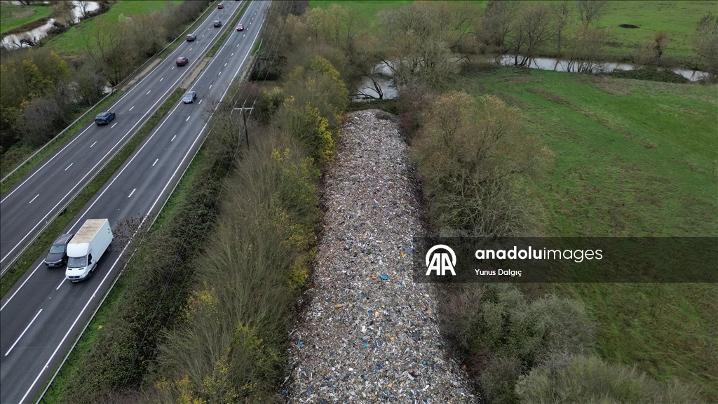 Footage, including drone images captured by Anadolu, shows the hundreds of tons of rubbish stacked about 10 meters high, piled on land between the River Cherwell and the A34 near Kidlington, which has triggered warnings of an environmental catastrophe.