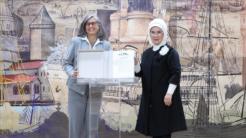 Turkish first lady Emine Erdogan chaired a meeting Friday in Istanbul. of the UN Advisory Board on Zero Waste.