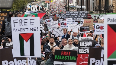 Carrying Palestinian flags, protesters chanted slogans, including: "Terrorist Israel" and "freedom for Palestine."