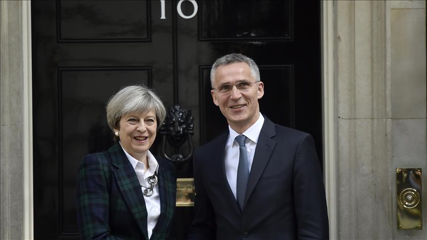 Stoltenberg visited Prime Minister Theresa May at Downing Street where the two leaders issued statements before meeting.