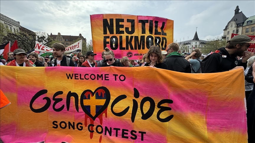 Pro-Palestine demonstrators in the Swedish city of Malmo protested Israel’s participation in the Eurovision Song Contest on Thursday.