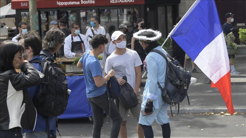 Although there was no shortage of national pride on Tuesday, protests were held as well by those faulting the government's handling of the pandemic. Medical workers demonstrated at the Place de la Republique, ending at Place de la Bastille, the site that gave rise to the French Revolution on July 14, 1789.