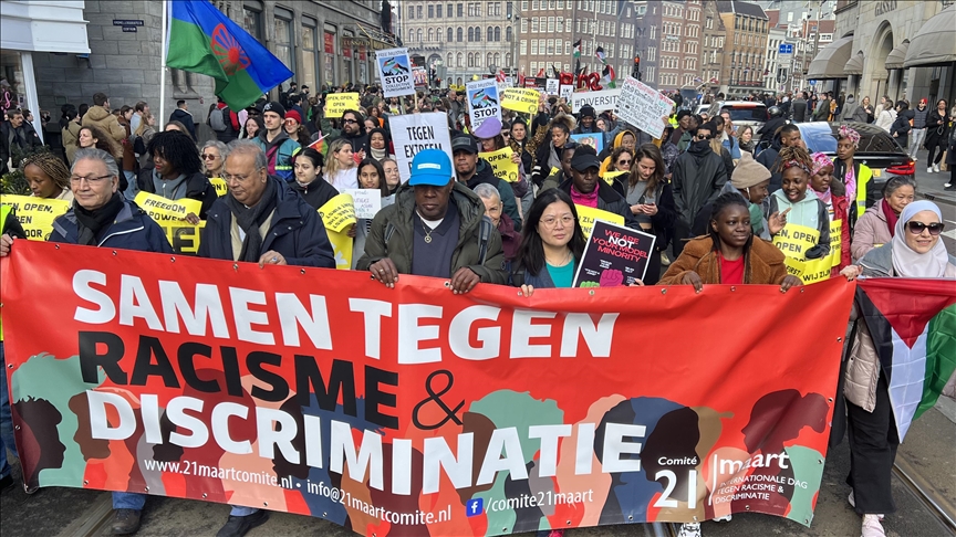 The protest, organized by March 21 Committee, took place at Dam Square in Amsterdam with the attendance of people from different ethnic backgrounds.