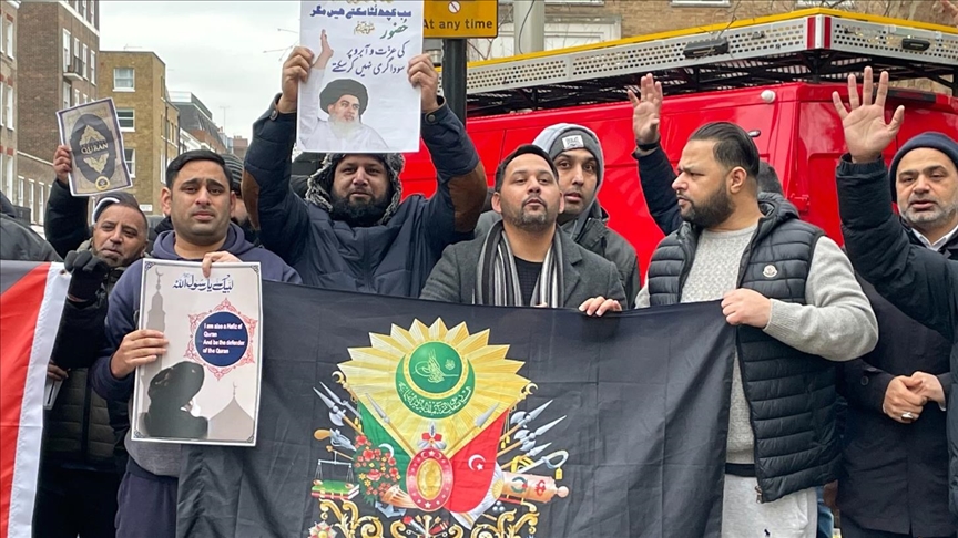 A group of Muslims on Saturday gathered outside Sweden’s Embassy in London to protest the provocative burning of a copy of the Quran by a far-right Swedish-Danish figure.