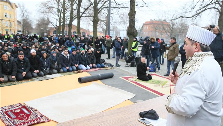 Hundreds of Muslims from different communities joined the prayer and demonstrated in solidarity with the Koca Sinan Mosque, which belonged to the Turkish-Muslim organization DITIB.
