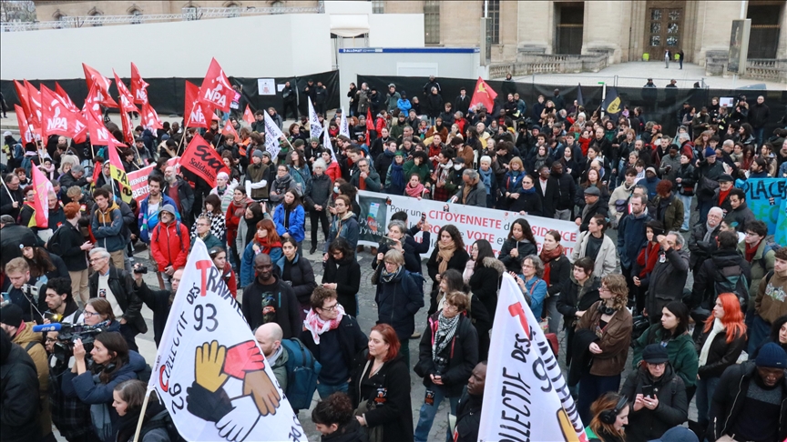 Hundreds of opponents of France’s new immigration law gathered Thursday near the Louvre Museum in Paris, demanding that it be repealed.