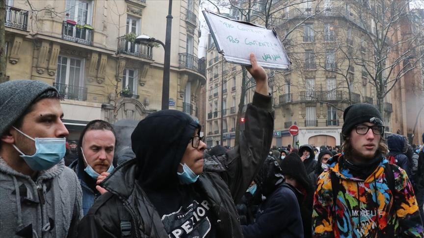 Protest rallies in France against the controversial security bill resumed on Saturday as large crowds of demonstrators gathered in multiple cities and towns amidst snowfall with the police clashing with protesters in at least one city.