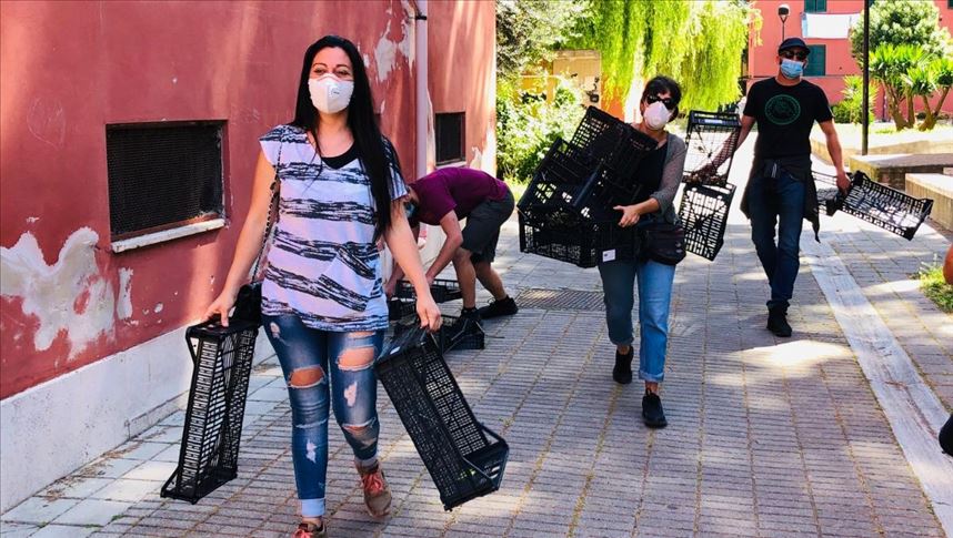 Twice a week, a group of young volunteers distributes food boxes to some 100 families living in the poor neighborhood of Quarticciolo on the eastern outskirts of Rome to help them survive amid the novel coronavirus pandemic.
