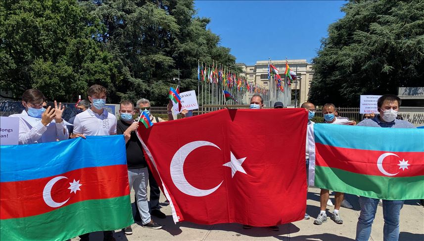 Organized by Switzerland-based Azerbaijan Diaspora Organizations Council, the protest was also attended by Turkish organizations in the country.
