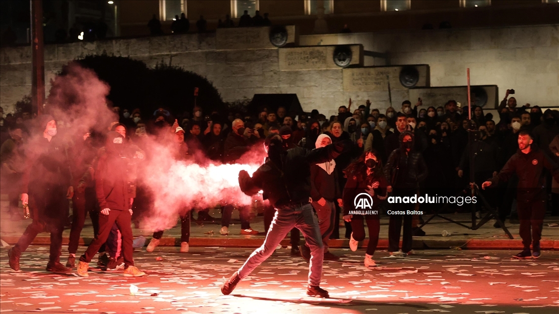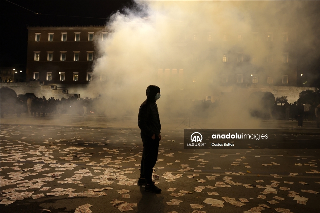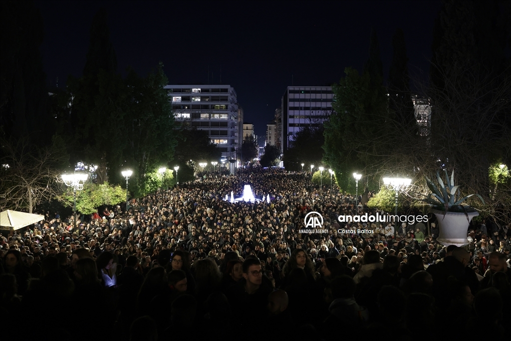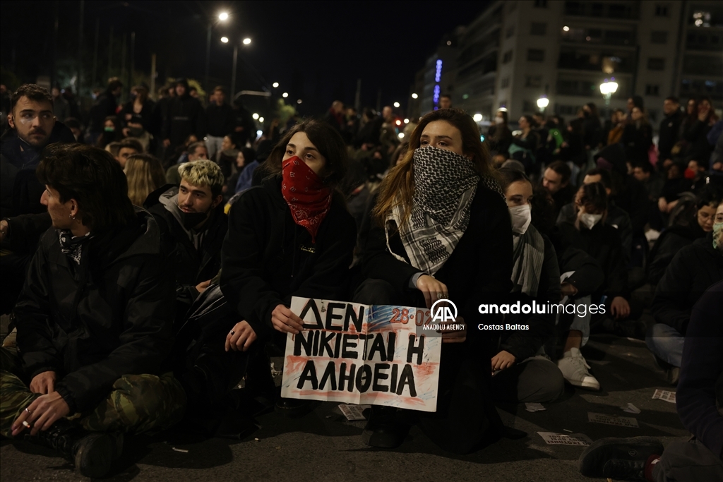 The protest, organized by the Youth Branch of the Greek Communist Party (KNE), took place in front of Parliament, where demonstrators chanted slogans calling for accountability and the punishment of those responsible, accusing the government of negligence and failing to implement safety measures that could have prevented the disaster.