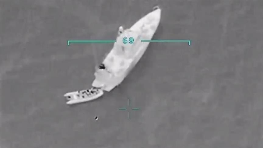 A Turkish naval drone recorded footage of Greek forces illegally pushing back a boat carrying irregular migrants to Turkish territorial waters, the National Defense Ministry said on Tuesday.