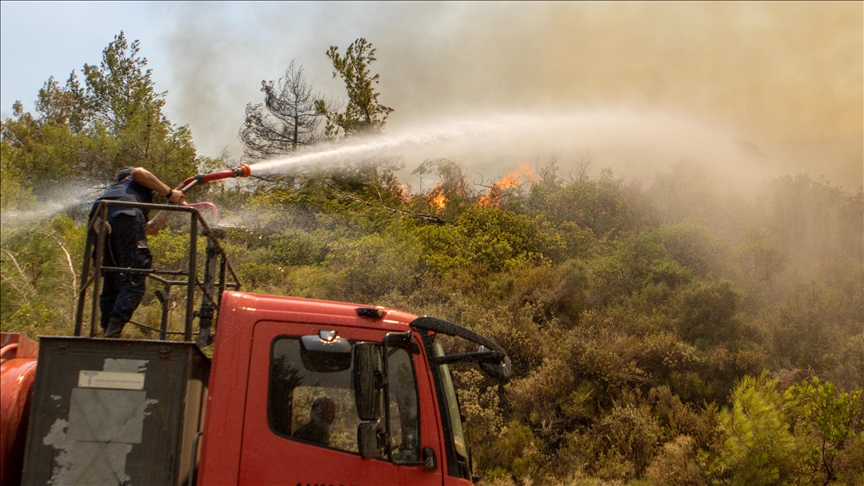 A wildfire that started on Saturday in Greece’s northeastern town of Alexandroupolis raged on for a second day on Sunday, razing a vast pine forest area and forcing evacuations of 13 settlements, the state-run AMNA news agency reported.