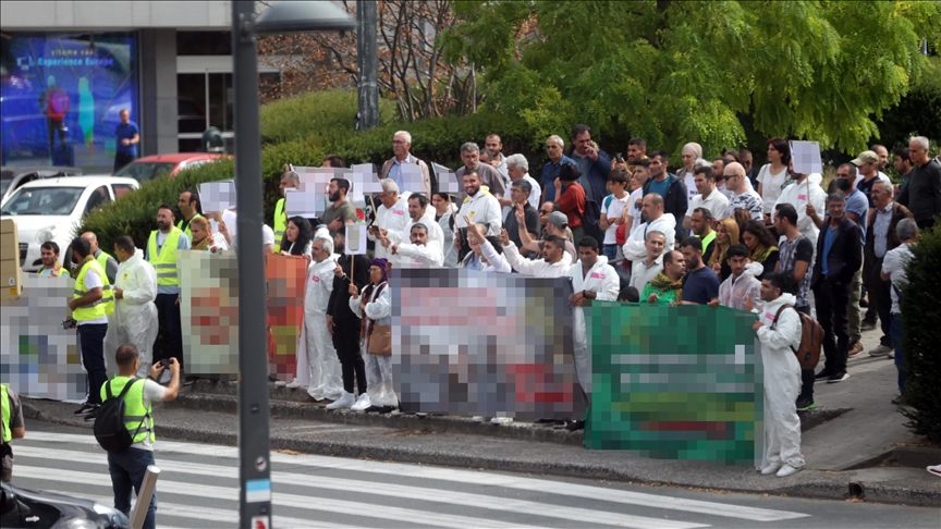 The group gathered on the Schuman square located in front of the headquarters of the EU Commission and European Council.