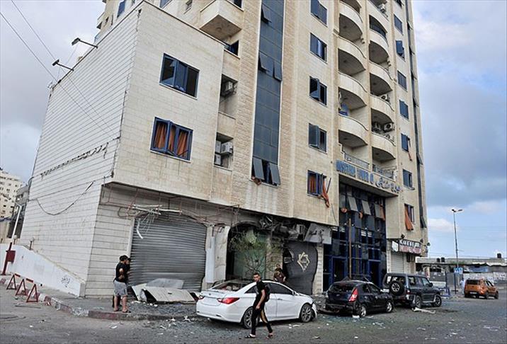 Israeli planes struck a building housing Anadolu Agency office in western Gaza City early Sunday.