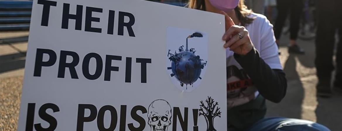 It points to the influence of fossil fuel companies at climate talks, noting that 1,600 lobbyists attended the recent UN climate change summit (COP) in Brazil.