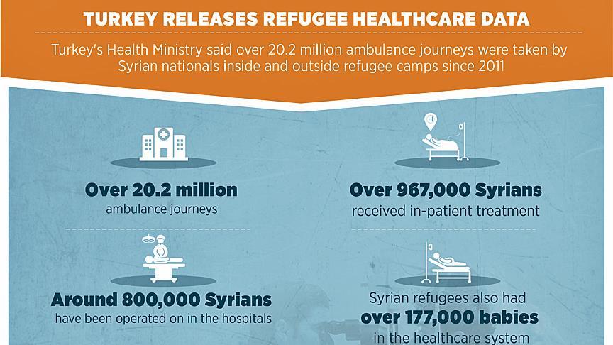 Turkey's Health Ministry said over 20.2 million ambulance journeys were taken by Syrian nationals inside and outside refugee camps since 2011.
