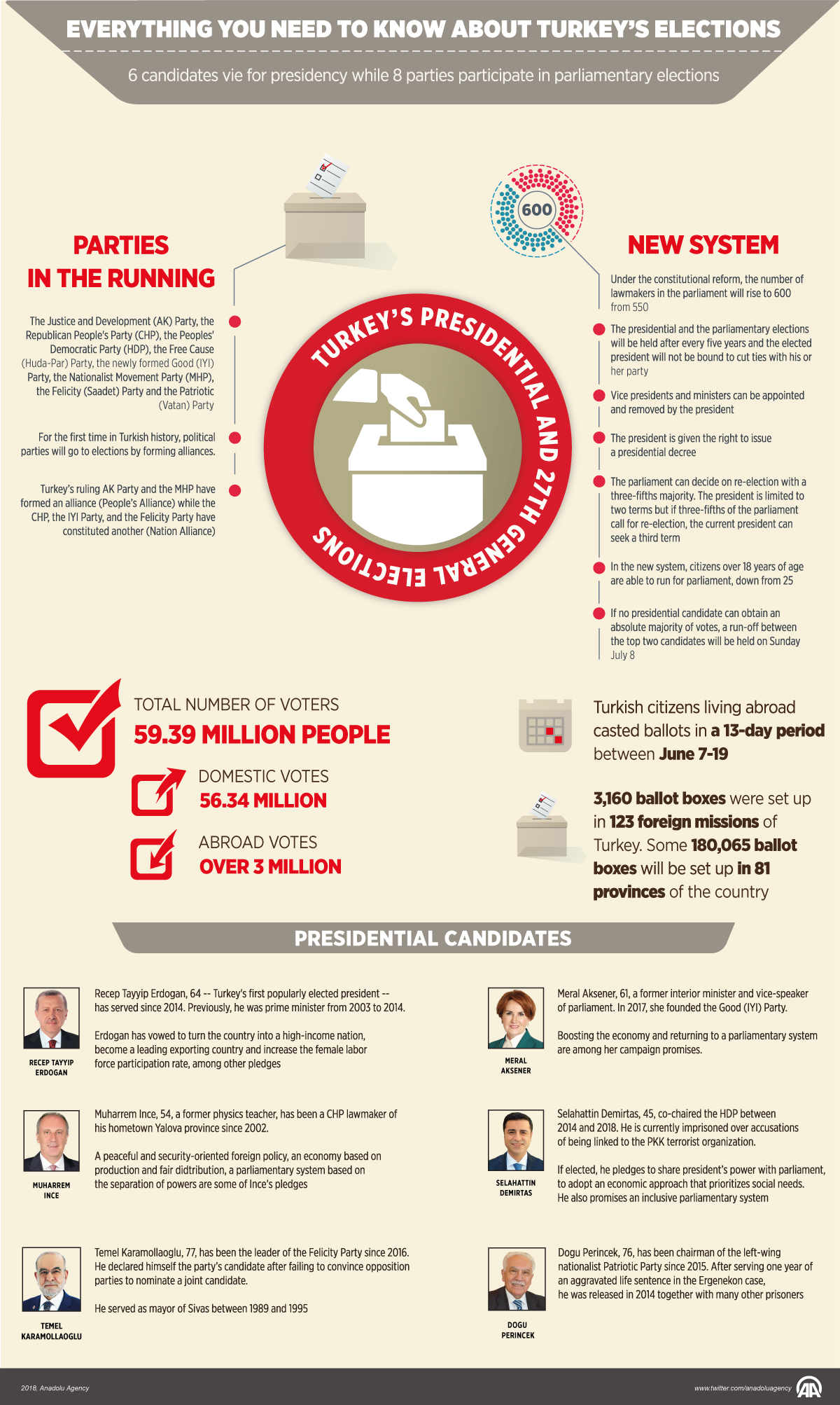 Turkish citizens will cast their votes on June 24 in the parliamentary and presidential elections, which are to cement the switch from a parliamentary to a presidential system. 20 June 2018•Update: 20 June 2018