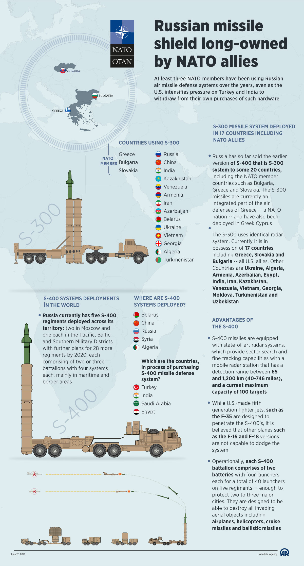 At least three NATO members have been using Russian air missile defense systems over the years, even as the U.S. steps up pressure on Turkey and India to withdraw from their own purchases of such hardware12 June 2019•Update: 12 June 2019