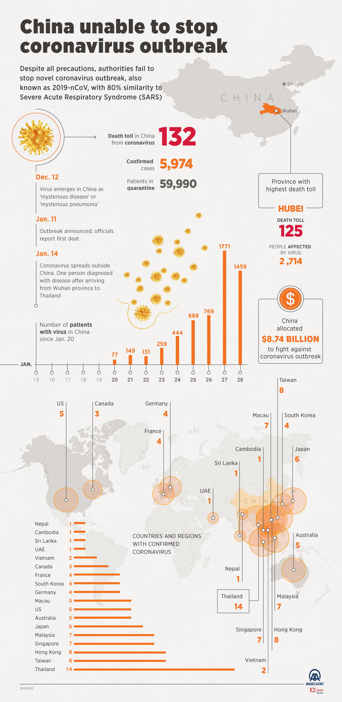 Despite all precautions, authorities fail to stop novel coronavirus outbreak, also known as 2019-nCoV, with 80% similarity to Severe Acute Respiratory Syndrome (SARS)