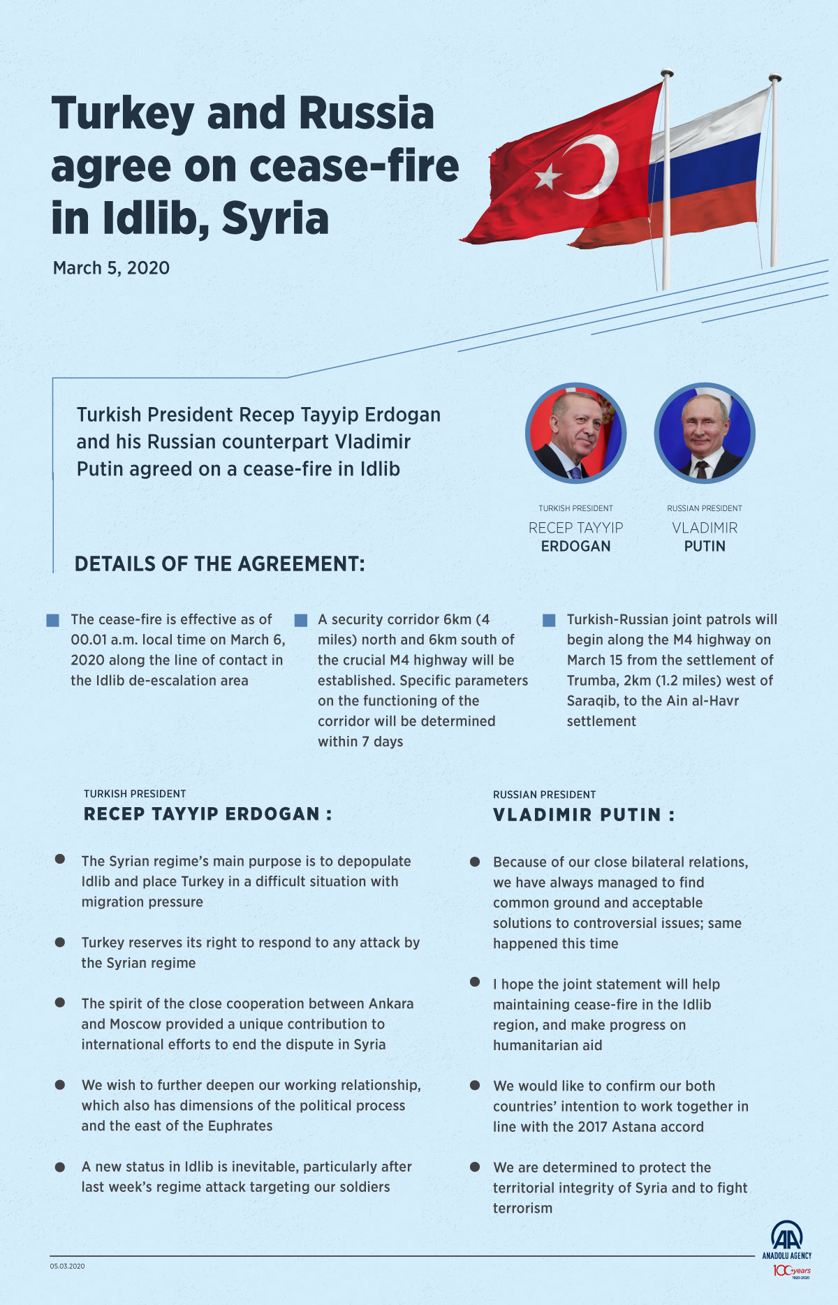 Turkey and Russia agree on cease-fire in Idlib, Syria