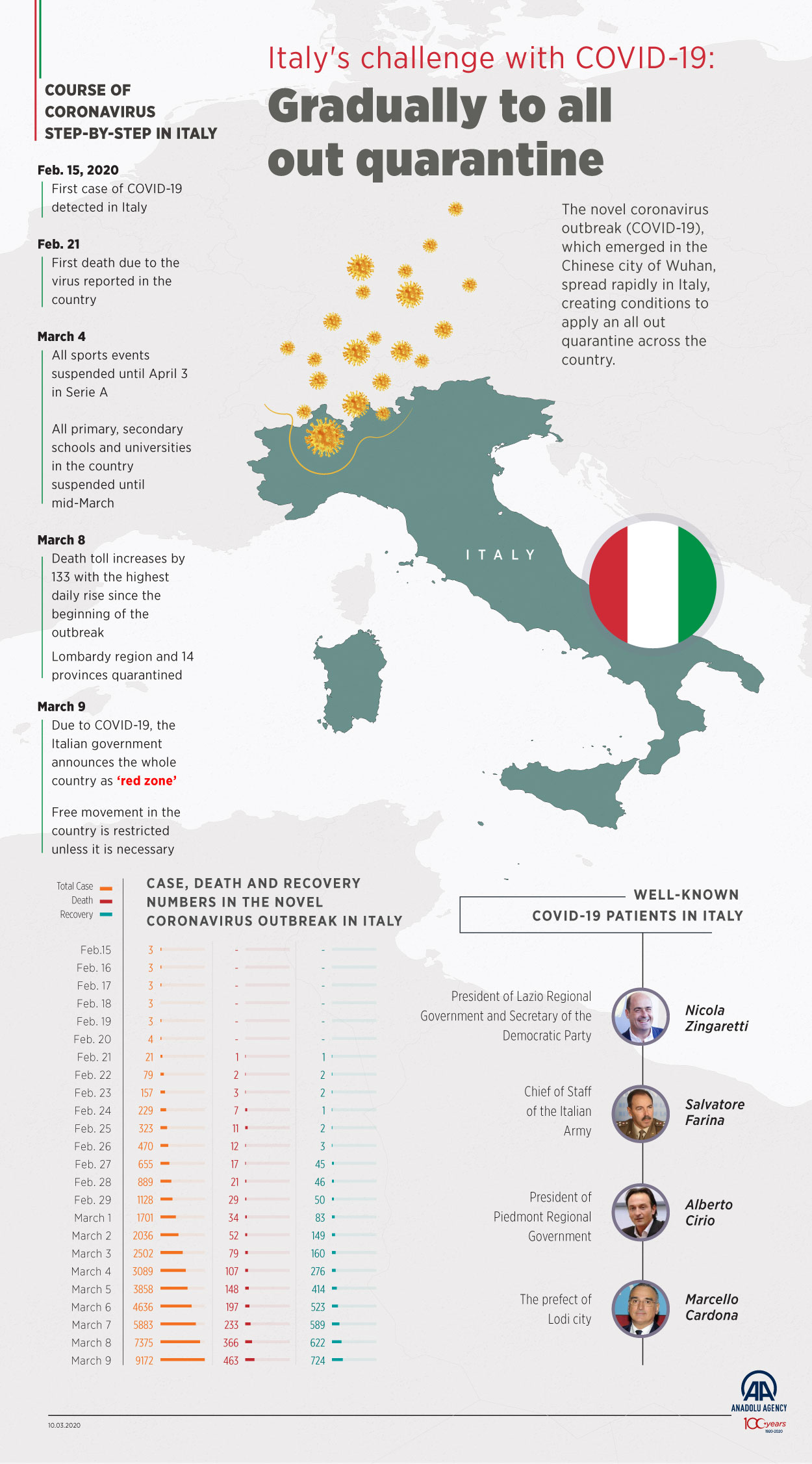 Italy's challenge with COVID-19: Gradually to all out quarantine