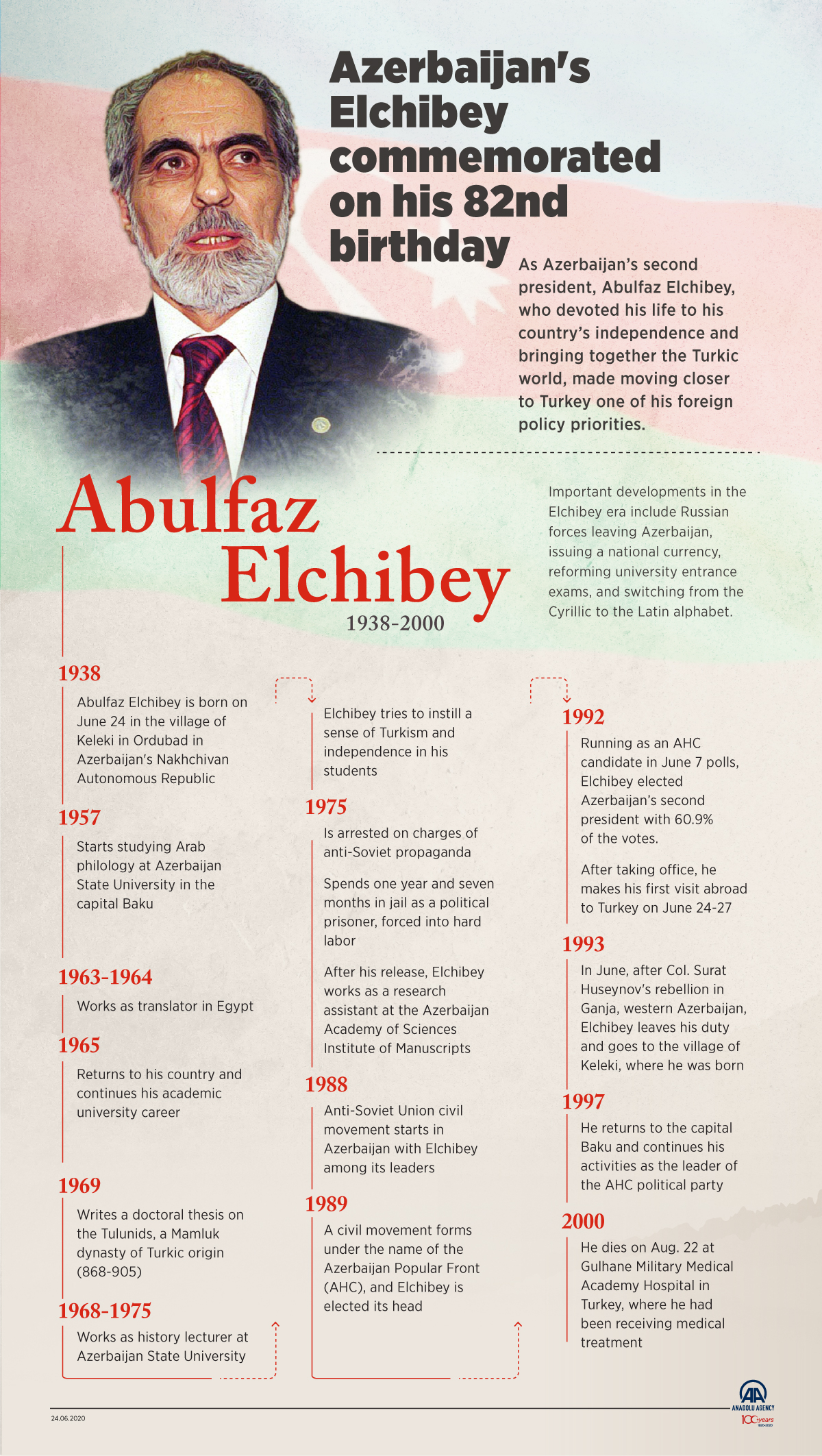 As Azerbaijan’s second president, Abulfaz Elchibey, who devoted his life to his country’s independence and bringing together the Turkic world, made moving closer to Turkey one of his foreign policy priorities24 June 2020•Update: 24 June 2020