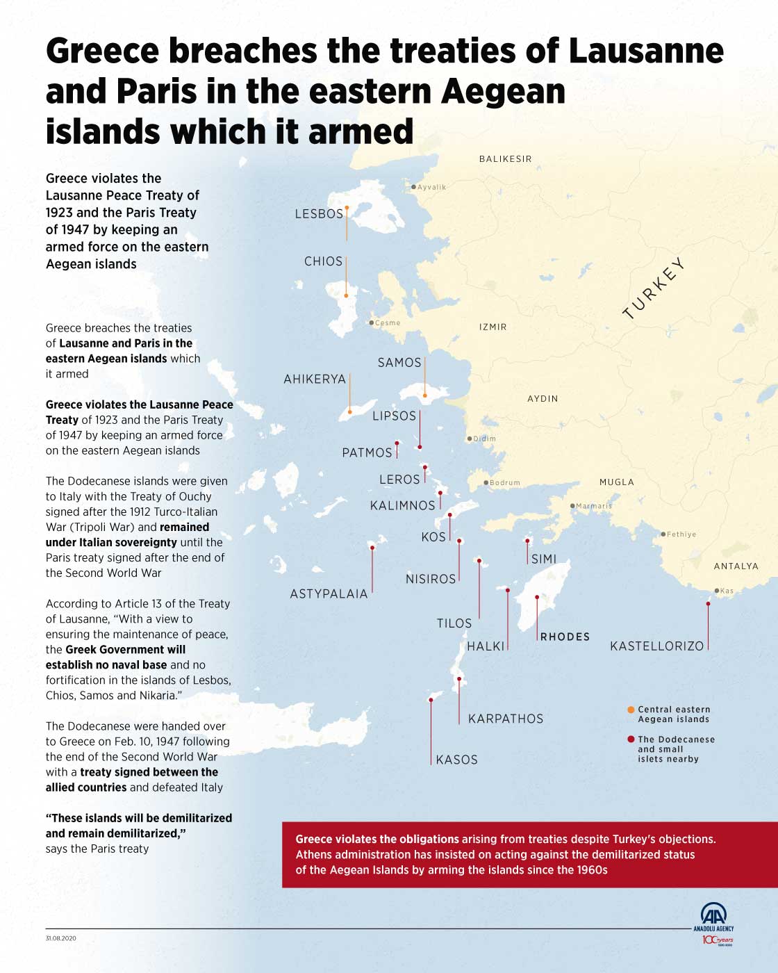 Greece breaches the treaties of Lausanne and Paris in the eastern Aegean islands which it armed