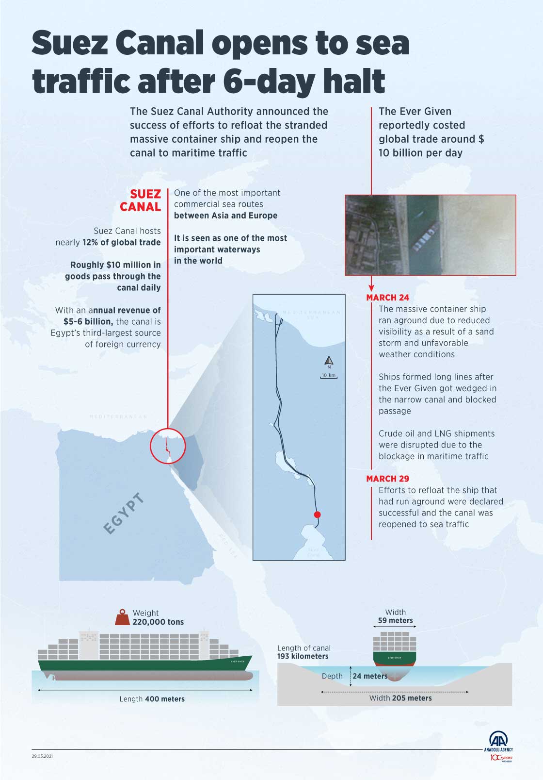 The Suez Canal Authority announced the success of efforts to refloat the stranded massive container ship and reopen the canal to maritime traffic