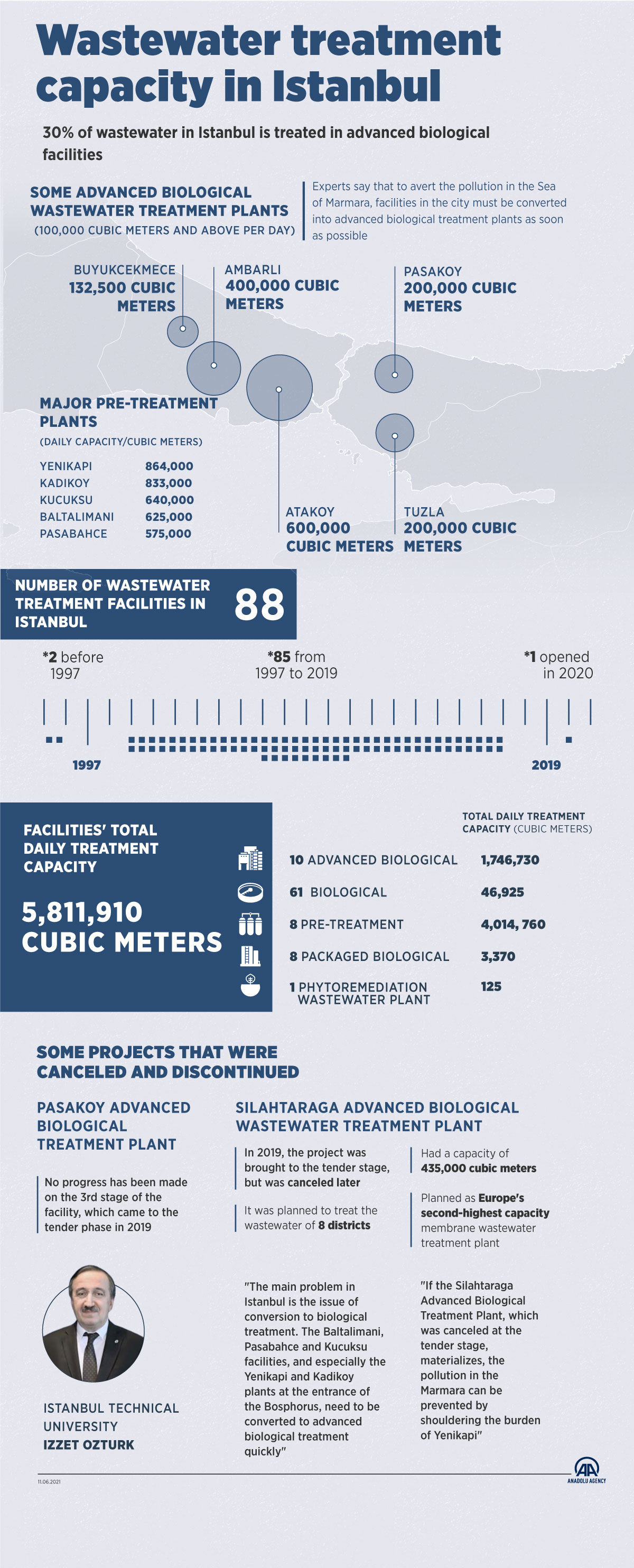 30% of wastewater in Istanbul is treated in advanced biological facilities