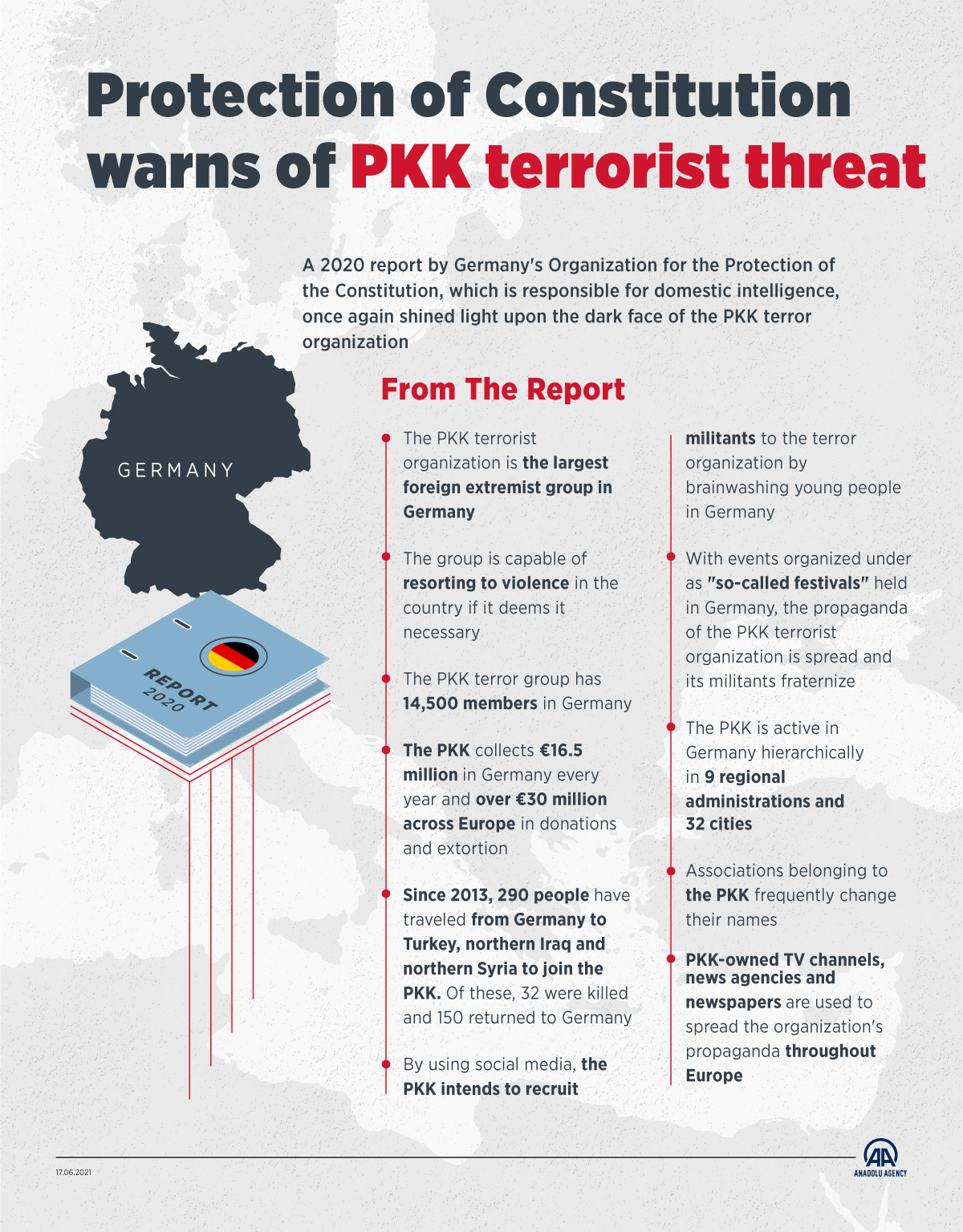 A 2020 report by Germany's Organization for the Protection of the Constitution, which is responsible for domestic intelligence, once again shined light upon the dark face of the PKK terror organization17 June 2021•Update: 17 June 2021