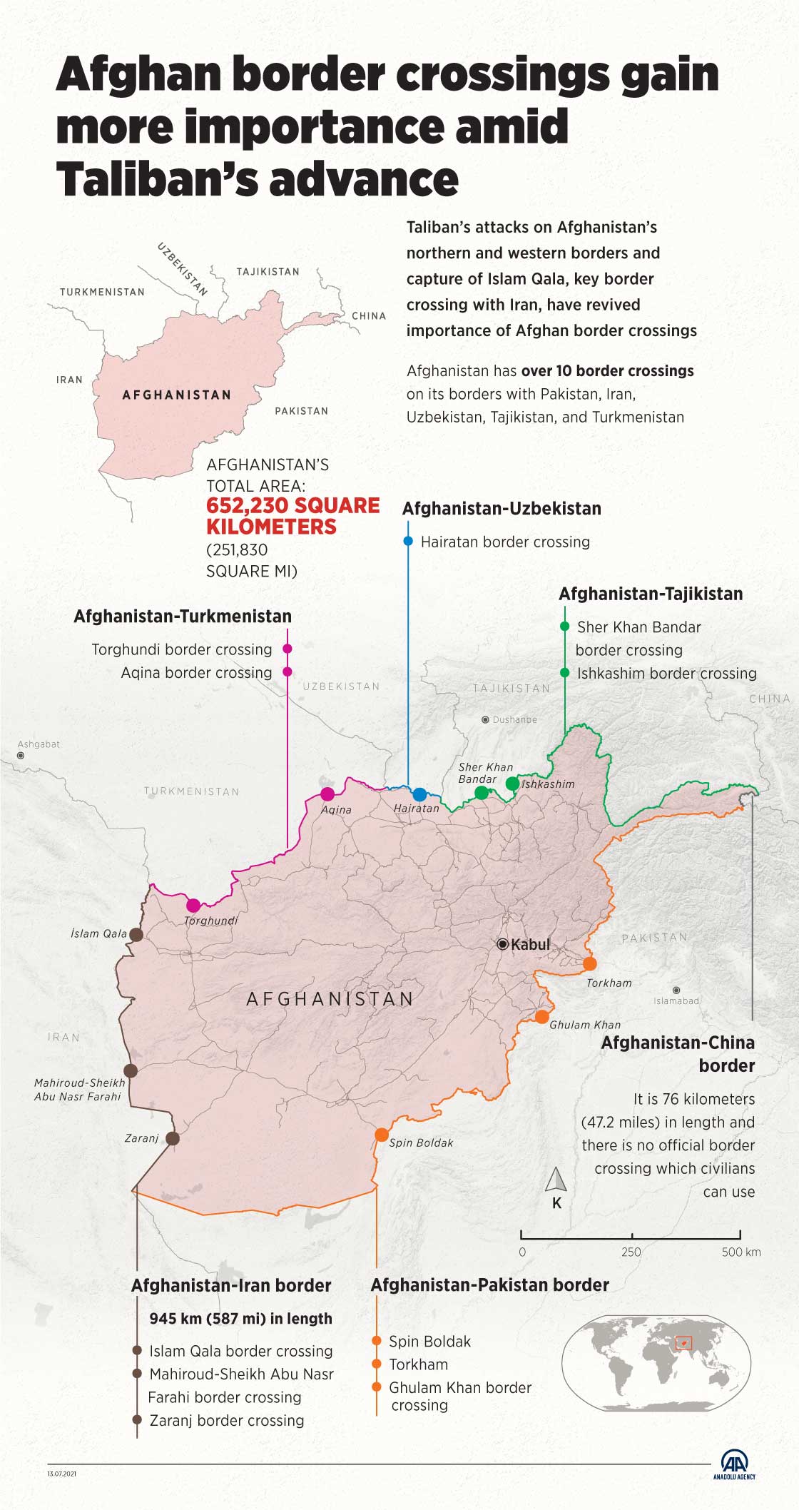 Taliban’s attacks on Afghanistan’s northern and western borders and capture of Islam Qala, key border crossing with Iran, have revived importance of Afghan border crossings13 July 2021•Update: 13 July 2021