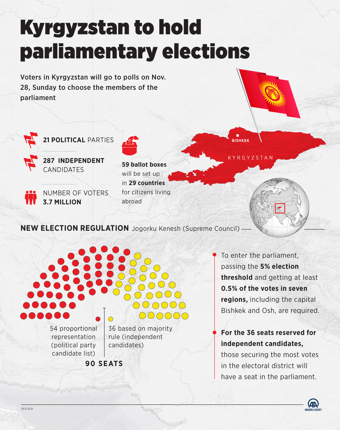 Voters in Kyrgyzstan will go to polls on Nov. 28, Sunday to choose the members of the parliament