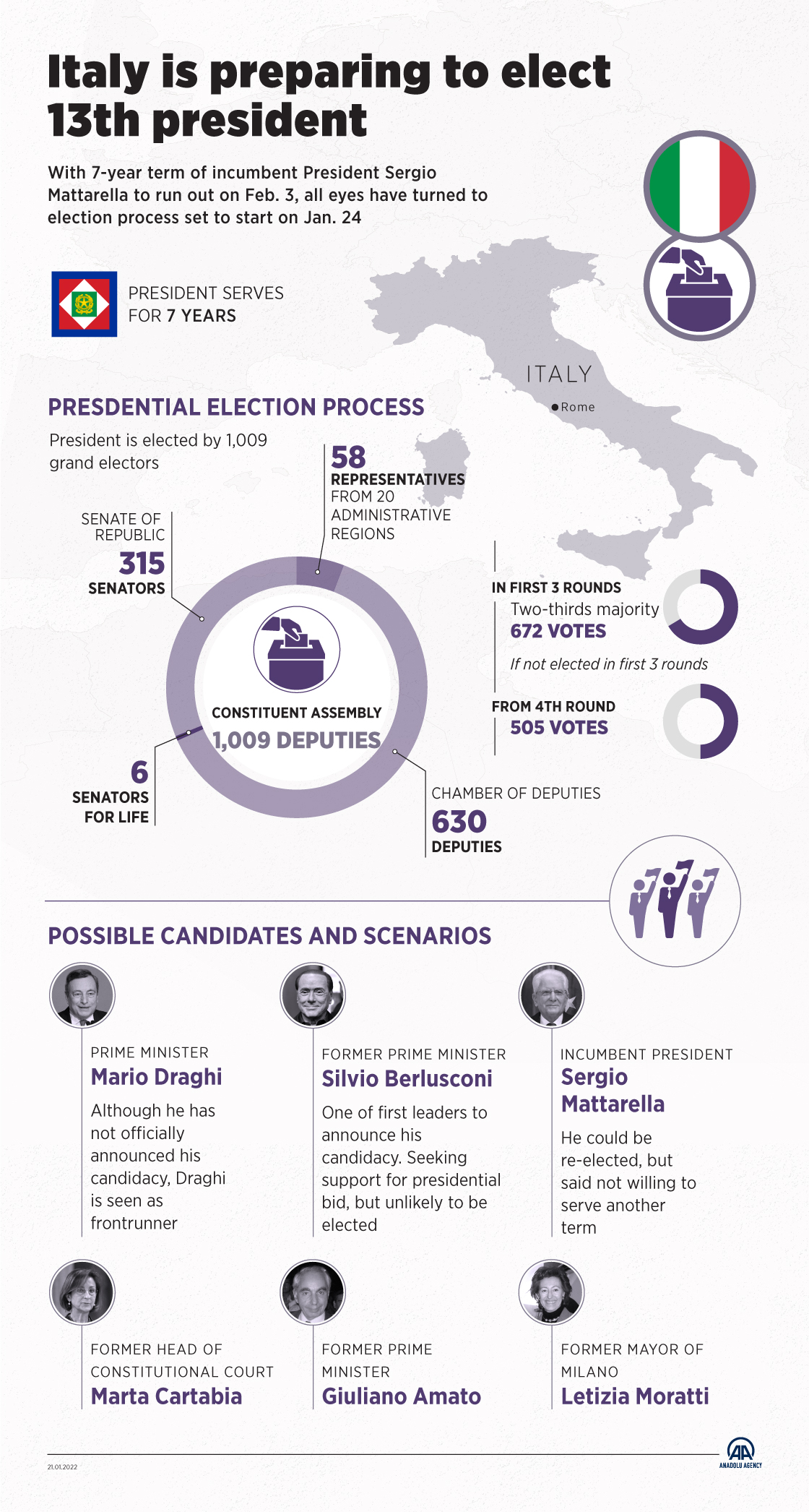 With 7-year term of incumbent President Sergio Mattarella to run out on Feb. 3, all eyes have turned to election process set to start on Jan. 24