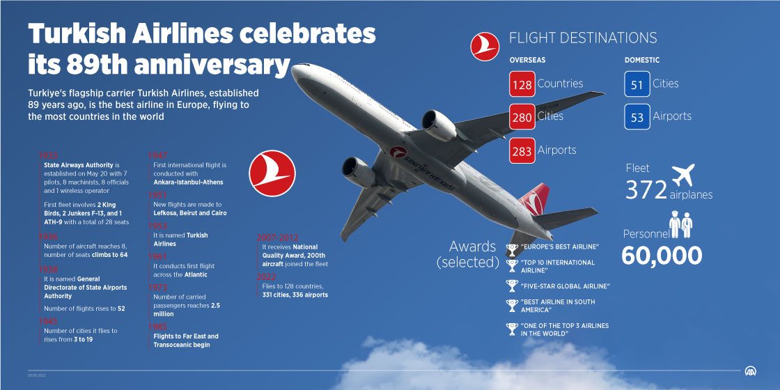 Turkish Airlines, which flies to most countries in the world, celebrating its 89th anniversary