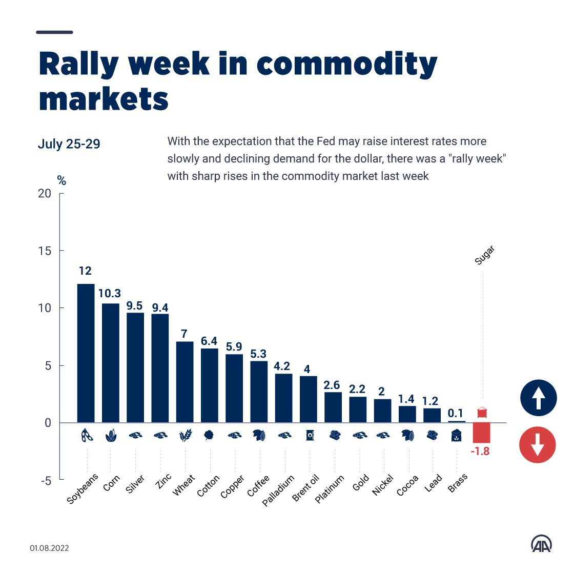 With the expectation that the Fed may raise interest rates more slowly and declining demand for the dollar, there was a "rally week" with sharp rises in the commodity market last week01 August 2022•Update: 01 August 2022