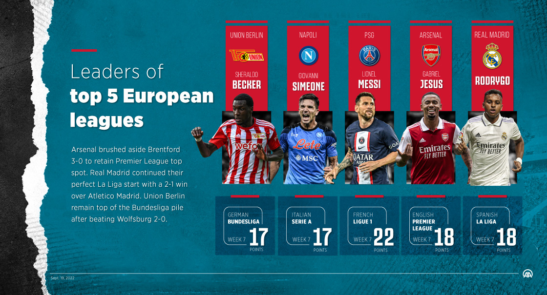Leaders of top 5 European leagues
