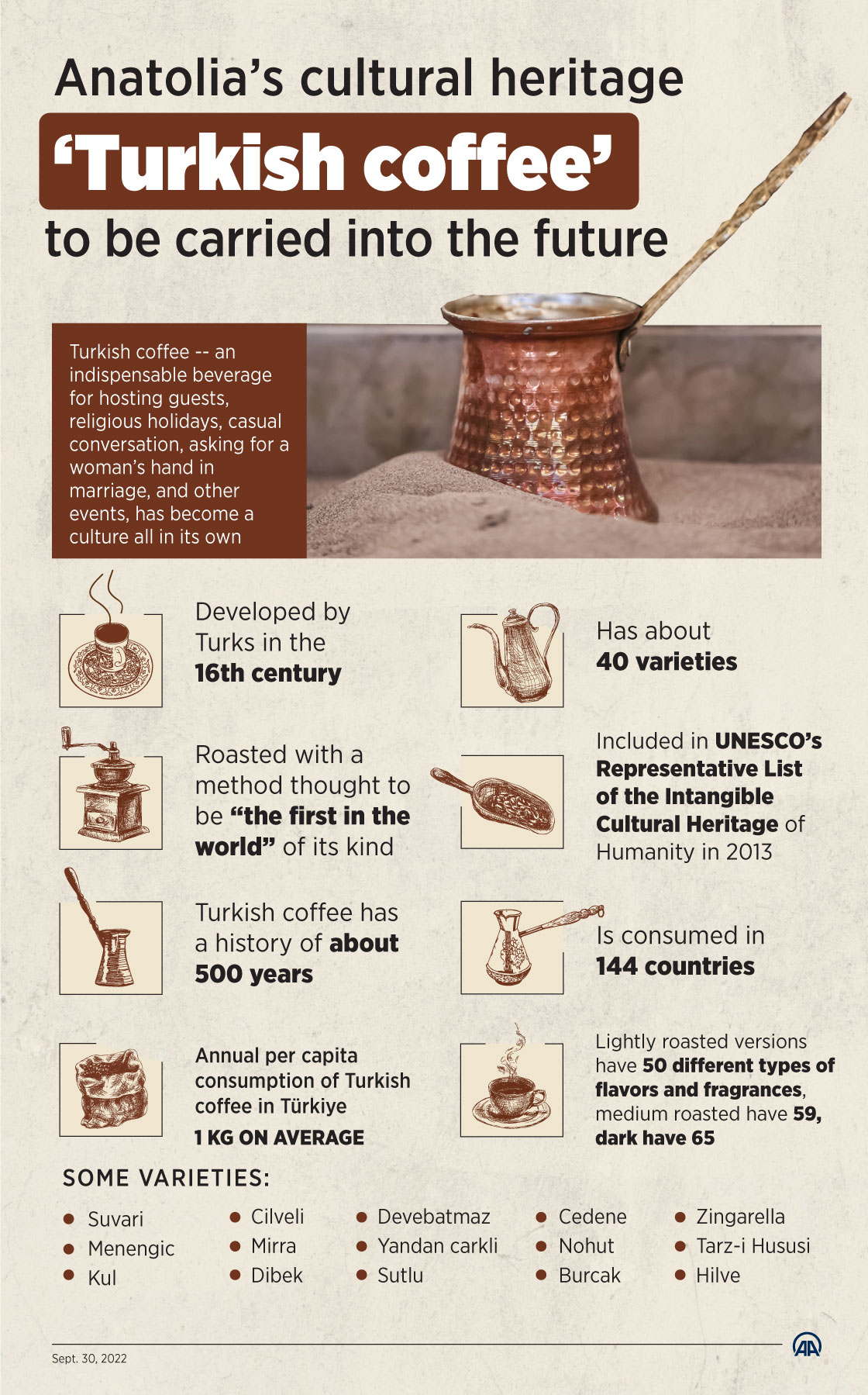 Turkish coffee -- an indispensable beverage for hosting guests, religious holidays, casual conversation, asking for a woman’s hand in marriage, and other events, has become a culture all in its own30 September 2022•Update: 30 September 2022